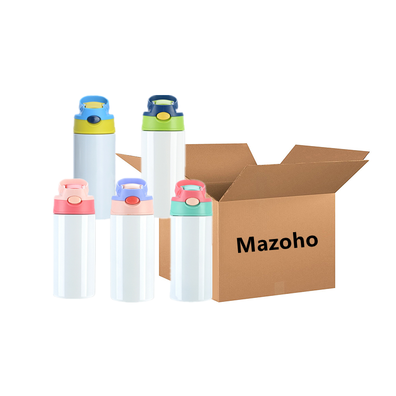 Mazoho 30pcs Carton 12oz Skinny Straight Sublimation Kids Flip Top Tumblers Kids Baby Water Bottle
