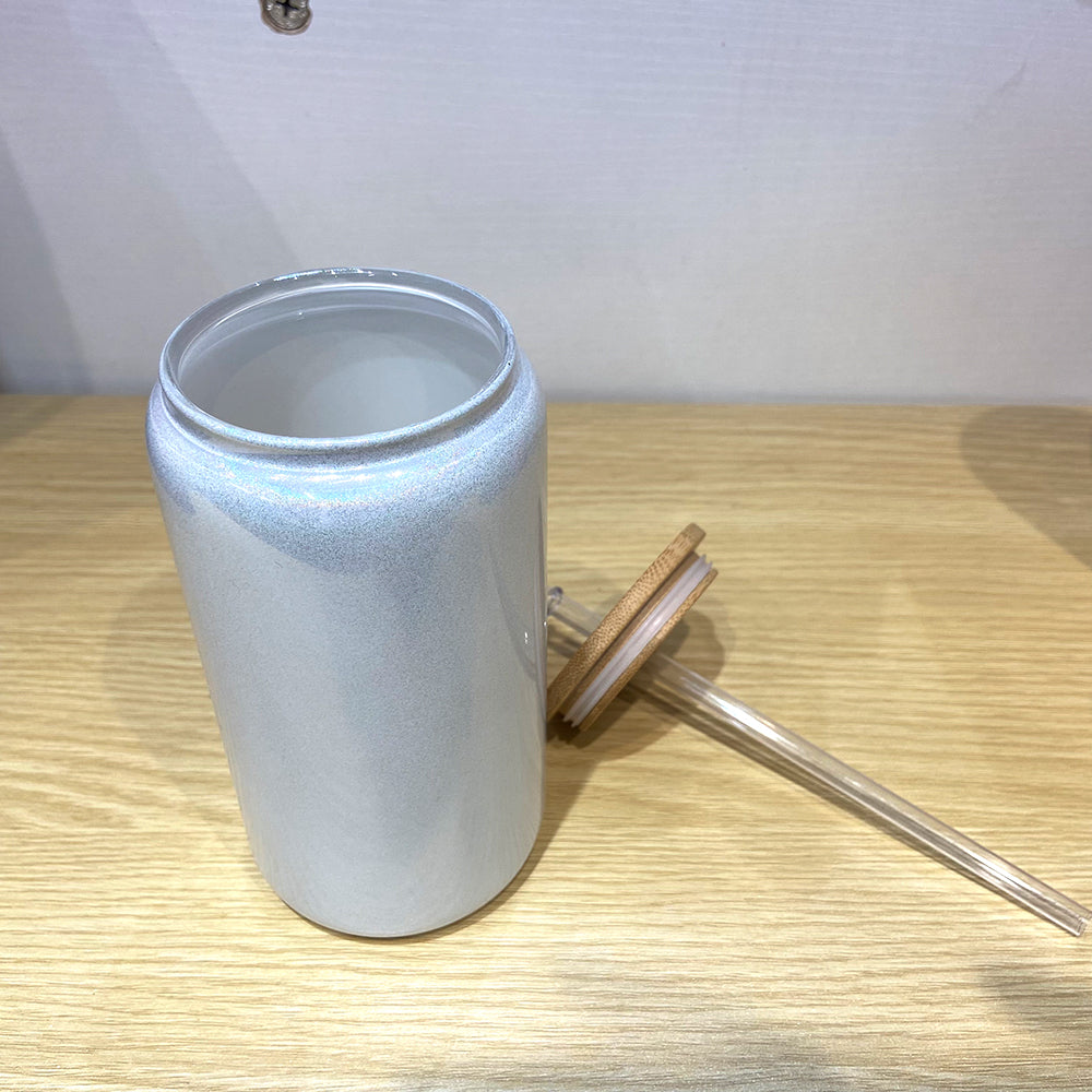 USA Warehouse 25pack Glitter Glass Water Juice Soda Tumbler Cups 16oz Colored Shimmer Sublimation Glass Can With Bamboo Lid and Straw